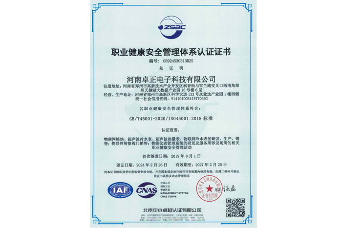 職業(yè)健康安全管理體系認(rèn)證證書